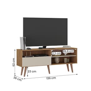 Este móvel combina estilo e funcionalidade, proporcionando um espaço ideal para sua TV e outros dispositivos eletrônicos.