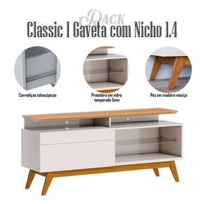 Rack Bancada 1 Gaveta com Nicho e Painel para Tv Classic 1.4 Off White Nature - Imcal