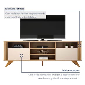 Rack Bancada 2 Portas Pés Madeira Maciça Mariana Tvs de até 65 Polegadas Quer dar aquele toque especial na sua sala? Nosso Rack Mariana é a escolha perfeita! Com nichos decorativos que deixam o ambiente mais organizado e elegante, ele é recomendado para TVs de até 65 polegadas, garantindo uma experiência completa de entretenimento. O tampo com borda arredondada traz um acabamento clean e sofisticado, ideal para quem valoriza um design moderno e funcional. Além disso, os pés robustos em madeira maciça oferecem estabilidade e um charme irresistível. Vem garantir o seu e transformar sua sala no espaço mais estiloso da casa!