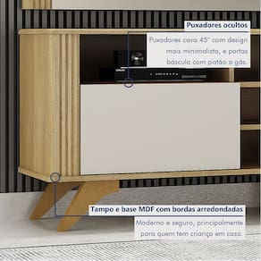 Estilo do Pé; Moderno Modelo de Porta; Porta Lisa Quantidade de Prateleiras; 01 Prateleira Tipo de Porta; Basculante Marca; Valdemóveis Suporta Até -kg-; 40 kg Possui Rodízio; Não Possui Prateleiras; Sim Possui Pés; 05 Possui Nichos; 03 Possui Iluminação; Não Possui Gavetas; Não Peso Máximo por Prateleira; 10 kg Linha ou Coleção; Mariana Ideal para TVs até -Polegadas-; 65 Estilo; Moderno Sapatas Niveladoras; Não Cor do Produto; Cinamomo/Off White Tipo de Puxador da Porta; Embutido Quantidade de Espelhos; Não Quantidade de Portas; 2 Tipo de Rack; Rack Moderno Ambiente Principal; Sala de Estar Cor Predominante; Bege
