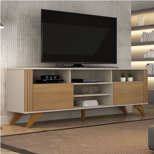 Rack Bancada 2 Portas Pés Madeira Maciça Mariana Tvs de até 65 Polegadas
