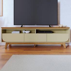 Rack Bancada Selene, com design funcional e detalhes usinados que transformam o ambiente. Estrutura em MDP 15/25 mm, (base 15mm e tampo/rodapés/pés em 25mm) suportando TVs de até 75 polegadas com ( NÃO INCLUSA). Conta com tampo suspenso com bordas chanfrada, 3 gavetas com corrediças telescópicas (gavetas laterais com frente em detalhe curvo) e puxadores tipo cava, 2 nichos centrais, passa-fios e 4 pés usinados com sapatas plásticas. Acabamento em pintura UV texturizada (fosco e brilho). Este móvel será entregue em 02 volumes.