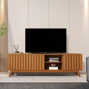 Feita em MDF ripado, com design moderno e pés resistentes, acomoda TVs de até 75.