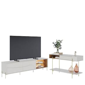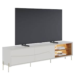 Rack Bancada Amalfi com Pés em Metal e Aparador para Sala Sena Off White Matte Freijó - Colibri