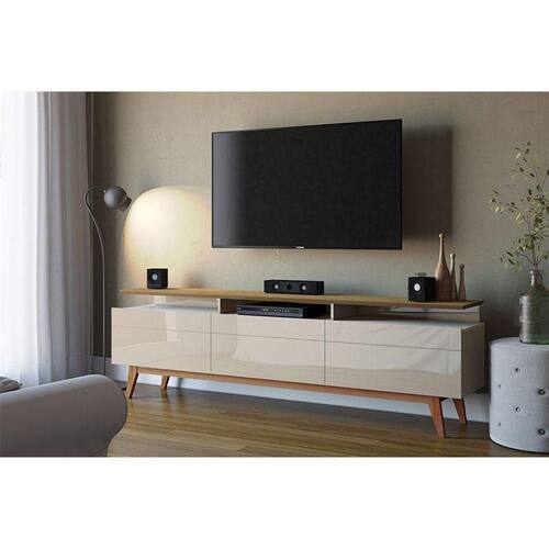 Rack Bancada Ambiente Classic 3 Gavetas com Nicho Off White Freijó Touch - Imcal