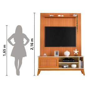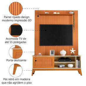 Rack Bancada Aruba Com Painel Para Tv Até 55 Polegadas Egeo Cedro/off White Ripado Impressão 3d Edn Cedro