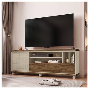 - Possui 2 Portas sendo 1 basculante e 1 convencional - Possui 5 Rodízios sendo 2 com trava - Possui 1 Prateleira - Possui 3 Nichos - Suporta TV até 65 Polegadas