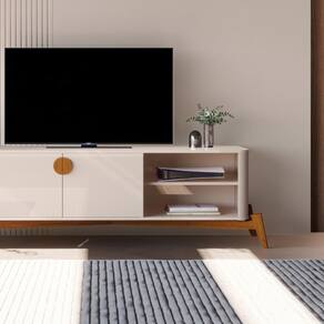 A Bancada/Rack Buriti é uma peça elegante e sofisticada, que valoriza os detalhes em madeira, como o puxador. Possui portas com dobradiças com amortecimento que proporcionam um fechamento suave e silencioso das portas. O acabamento em pintura UV de ótima qualidade garante durabilidade e resistência, enquanto os pés em madeira maciça com acabamento em verniz conferem um toque rústico e elegante ao conjunto.