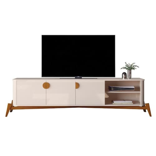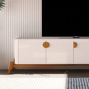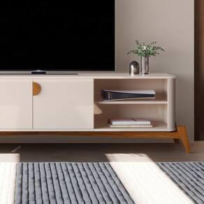 A Bancada/Rack Buriti é uma peça elegante e sofisticada, que valoriza os detalhes em madeira, como o puxador. Possui portas com dobradiças com amortecimento que proporcionam um fechamento suave e silencioso das portas. O acabamento em pintura UV de ótima qualidade garante durabilidade e resistência, enquanto os pés em madeira maciça com acabamento em verniz conferem um toque rústico e elegante ao conjunto.