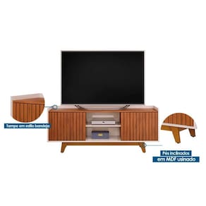 Dimensões(Cm): Rack Bancada p/ TV até 60 Pol Flat Ripado c/ 2 Portas 150x60cm