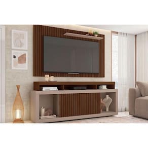 Rack Bancada c/ Painel p/ TV até 60 Pol New Oscar Rodízios 180x174cm Fendi/Havana - Caemmun Marca: Caemmun