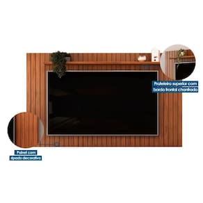 Dimensões(Cm): Painel Home p/ TV até 65 Pol Lume Ripado c/ Prateleira 175x108cm