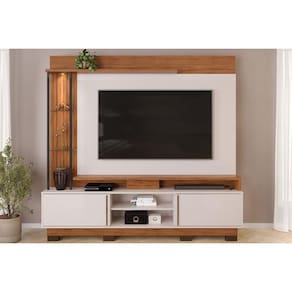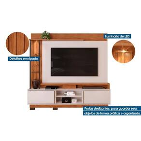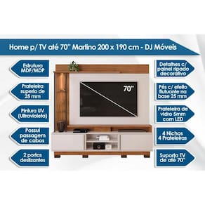 Home p/ TV até 70 Polegadas Martino c/ Prateleira Nichos e Pés 200x190cm Freijó/Off White - DJ Móveis