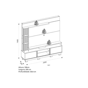 Dimensões(Cm): Comprimento(Profundidade): 39cm x Largura: 200cm x Altura: 190cm