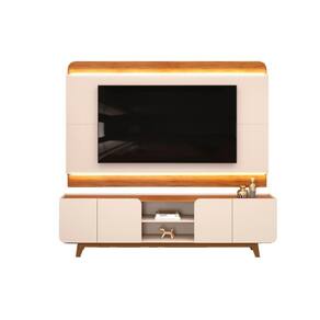 Painel Home p/ TV até 75 Polegadas Nadine c/ Led 219x136cm Off White/Freijó - DJ Móveis