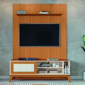 O Conjunto Rack Bancada Caribe com Painel Egeo é a definição de elegância e sofisticação! Conta com espaço para aparelhos eletrônicos, prateleiras, 1 porta deslizante com amplo espaço interno e acabamento em tela Rattan sintética, painel com detalhe ripado em impressão 3D e rack com pés resistentes de madeira. Feito com materiais de qualidade garantindo maior resistência e durabilidade. Acomoda TV de até 55 polegadas. MEDIDAS PAINEL: [ A ] = 216 cm [ L ] = 135 cm [ P ] = 14 cm MEDIDAS PRATELEIRA: [ L ] = 110 cm [ P ] = 14 cm MEDIDAS RACK: [ A ] = 58 cm [ L ] = 136 cm [ P ] = 36 cm MEDIDAS DOS PÉS: [ A ] = 22 cm [ L ] = 6,5 cm [ P ] = 2,5 cm ACOMODA TV ATÉ: 55 polegadas PESO DO PAINEL: 34 Kg PESO SUPORTADO PELO PAINEL: 50 Kg PESO DO RACK: 21,4 Kg PESO SUPORTADO PELO RACK: 30 Kg MODELO: Rack Bancada Caribe Com Painel Para TV Até 55 Polegadas 1,35m Egeo Ripado Impressão 3D COR: Cedro/Off White MARCA: EDN ACABAMENTO: Pintura UV MATERIAL DO PAINEL: MDP MATERIAL DO RACK: MDF ESPESSURA DO MATERIAL DA ESTRUTURA: 12 e 15mm PORTAS: 1 TIPO DE PORTA: Correr PRATELEIRAS: 2 PÉS: 4 MATERIAL DOS PÉS: MDF GARANTIA: 3 meses pelo fabricante DIFERENCIAL: Tampo do Rack em MDF com borda laqueada, acabamento do painel em ripado impressão 3D, portas deslizantes com acabamento em moldura e tela Rattan sintética, prateleiras, trilhos em ABS, produto acomoda TV e objetos decorativos. ITENS INCLUSOS: 1 Rack Bancada, 1 Painel, 1 manual de Montagem e 1 Kit de ferragens INSTRUÇÕES/CUIDADOS: Para maior durabilidade, recomendável que a limpeza dos móveis seja feita com pano limpo e levemente umedecido em água e sabão neutro. Em seguida, deverá ser passado um pano limpo e seco. A Esplanada Móveis se responsabiliza pela entrega dos produtos adquiridos até a porta de entrada ou portaria do endereço indicado, se a portaria do condomínio permitir, as entregas são efetuadas no piso térreo e é de responsabilidade do cliente a locomoção da mercadoria até seu apartamento ou casa.