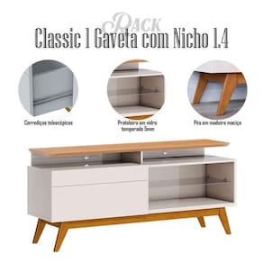 O rack da linha Classic 1.4 combina elegância e funcionalidade em um design sofisticado. Com um nicho espaçoso, uma prateleira em vidro dando um toque de modernidade, proporcionando um espaço ideal para acomodar seus aparelhos eletrônicos. A gaveta possui corrediças telescópicas, oferecendo praticidade e suavidade no manuseio, garantindo fácil acesso aos seus acessórios. Com um ótimo espaço interno, é perfeito para guardar seus itens mantendo sempre organizado e ao seu alcance. Os pés em madeira maciça oferecem estabilidade e durabilidade ao rack. Produzido pela Imcal, é desenvolvido em MDP/ MDF com materiais de alta qualidade garantindo mais resistência e longevidade. Com linhas clássicas e detalhes cuidadosamente elaborados será a combinação perfeita entre estilo e funcionalidade. Confira e garanta o seu!