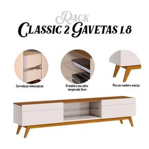 O rack da linha Classic 1.8 combina funcionalidade e estilo para aprimorar qualquer ambiente. Projetado com uma prateleira em vidro, adiciona um toque de elegância e proporciona um espaço adicional para colocar seus aparelhos eletrônicos. Com duas gavetas equipadas com corrediças telescópicas, oferece amplo espaço interno para você manter seus itens organizados e de fácil acesso. As corrediças telescópicas garantem um movimento suave ao abrir e fechar as gavetas. Os pés em madeira maciça oferece mais estabilidade. Produzido pela Imcal, é desenvolvido em MDP/ MDF com materiais de alta qualidade garantindo mais durabilidade e resistência, prolongando sua vida útil. Será uma peça de destaque adiciona charme e estilo à sua sala de estar. Confira e garanta o seu!