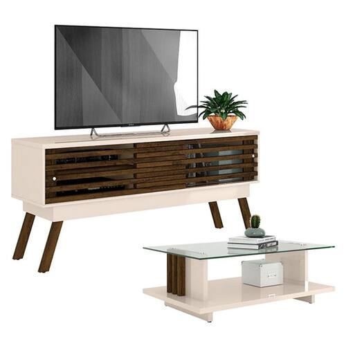 Rack Bancada com Mesa de Centro Frizz 1.5 Off White Savana – Madetec