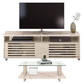 Rack Bancada com Mesa de Centro Frizz Cross Calacata Off White Madetec