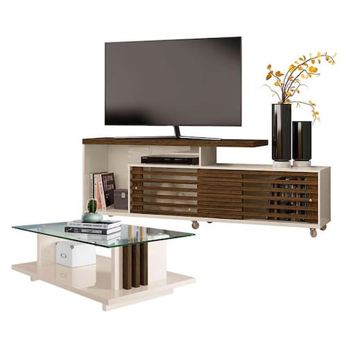 Rack Bancada com Mesa de Centro Frizz Off White Savana – Madetec