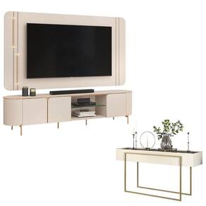Rack Bancada com Painel Ariana e Aparador para Sala Pilar Off White DJ Móveis