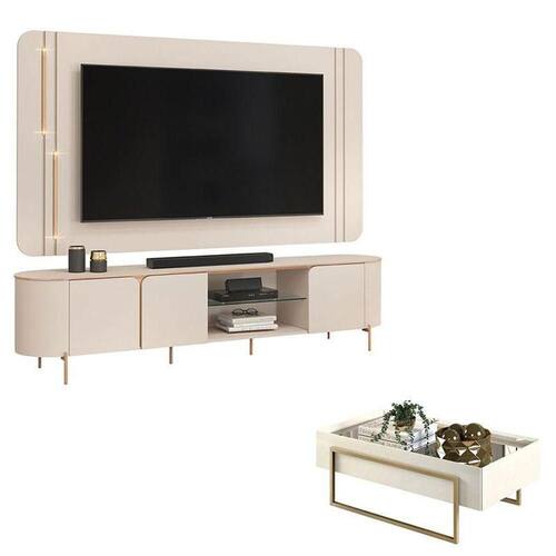 Rack Bancada com Painel Ariana e Mesa de Centro Petri Off White DJ Móveis
