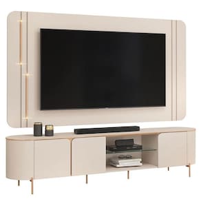 Está procurando móveis para montar sua sala? Apresentamos para você este belo conjunto composto pelo Rack Bancada com Painel e Mesa de Centro da linha Suri, fabricados pela DJ Móveis. O rack bancada possui bordas arredondadas, três portas com cantos curvos, uma prateleira em vidro é perfeito para acomodar seus aparelhos eletrônicos, além de pés metálicos na cor dourado, o painel segue o mesmo design com cantos arredondados e dois tubos metálicos com LED intercalados, que podem ser instalados em ambos os lados. A mesa possui um design totalmente moderno e sofisticado que deixa o ambiente lindo e luxuoso, sem contar que combina com qualquer decoração e deixa sua sala de estar com um toque refinado. Combinando praticidade, design e sofisticação, é perfeito para quem está buscando qualidade e sustentabilidade para elevar o estilo do seu ambiente. Confira e aproveite!