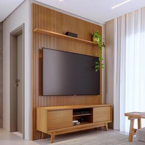 O Rack Bancada com Painel Milo é a combinação do Painel New Interlagos e a Bancada Atlas, ideal para quem busca inovação na decoração da sala. O Painel New Interlagos é em MDF e MDP com pintura UV, apresenta design frisado, prateleira superior e fixação na parede, proporcionando um visual moderno e clean, ideal para até 75. Já o Rack Bancada Atlas, em MDP, possui 2 portas deslizantes, detalhe chanfrado na base e no tampo, prateleira para eletrônicos e pés usinados, garantindo estabilidade e elegância.