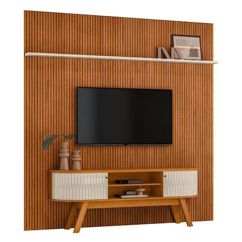 - Painel em MDF frisado (baixo relevo)