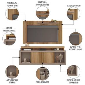 Ele possui duas portas deslizantes com detalhe ripado, que escondem um amplo espaço interno com uma prateleira, ideal para guardar objetos e acessórios. O Painel Para tem detalhe ripado suporta de até 65 polegadas, a prateleira superior de 25mm confere mais robustez e charme ao móvel. O Rack Bancada é produzido em MDP e MDF de alta qualidade, com acabamento em pintura UV que garante maior durabilidade e resistência e conta com cinco nichos para eletrônicos e decorações. Sem dúvidas esse é o móvel que vai transformar a sua Sala De Estar!
