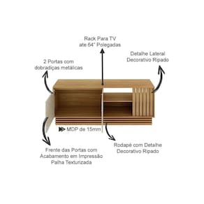 Dimensões(Cm): Comprimento(Profundidade): 19cm x Largura: 160cm x Altura: 102,3cm Material de Estrutura - Estrutura 100% MDP Estilo do Móvel - Estilo Ripado Tipo de Pintura - UV Tipo de Acabamento da Pintura - Pintura Semi Brilho Quantidade de Prateleiras - 1 Prateleira Ideal para TVs até (Polegadas) - 42 Certificação de Qualidade - Qualidade Aprovada Garantia - 3 meses