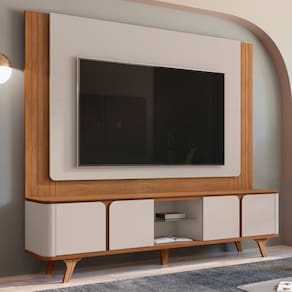 O conjunto Painel e Rack Pompeia é uma solução totalmente versátil e elegante, ideal para ser a peça central da sua sala de estar, dormitório ou área de lazer, sendo projetado para acomodar TV's de até 60 polegadas. O Painel Pompeia, produzido em MDF, destaca-se pelo design moderno com cantos centrais arredondados e um charmoso detalhe frisado nas laterais, adicionando sofisticação ao ambiente. O Rack Pompeia complementa o conjunto com um design contemporâneo marcado por cantos curvos suaves (MDF usinadas) e é suportado por pés de madeira maciça, garantindo durabilidade. As portas do rack contam com dobradiças soft-close para um fechamento silencioso, e ele ainda inclui uma prateleira de vidro temperado, unindo estética moderna, alta qualidade e funcionalidade para eletrônicos e decorações.