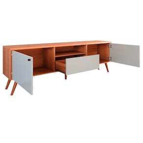 O painel, com 1,80m de largura, é projetado para TVs de até 70 polegadas, garantindo destaque ao ambiente e proporcionando um visual moderno e aconchegante. Seu design versátil combina facilmente com diferentes estilos de decoração, valorizando ainda mais a sua sala de estar.