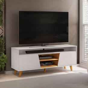 Fabricada com madeira de reflorestamento e acabamento em pintura UV, a Bancada combina durabilidade e sustentabilidade. Com suporte para TVs de até 60 polegadas, oferece espaço e funcional para o seu entretenimento. O design moderno da Bancada para inclui um amplo nicho central, perfeito para acomodar aparelhos eletrônicos e itens decorativos, enquanto as duas portas com cantos curvos e a prateleira espaçosa trazem organização e charme ao ambiente. Os pés retrô em polipropileno elevam a bancada do chão, facilitando a limpeza e conferindo um toque sofisticado. Já as bordas chanfradas do tampo e da base garantem acabamento refinado, e o passa-fios integrado mantém os cabos organizados para um visual mais harmonioso.