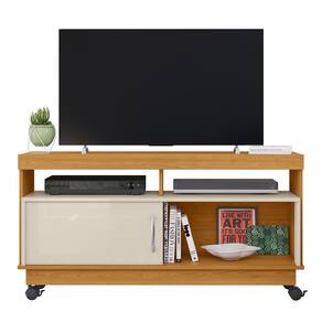 O Rack Bancada de TV 50 Pol 121cm Rute M01 Off/Cinamomo, da Mpozenato, combina design funcional e praticidade para deixar sua sala de estar ainda mais organizada.