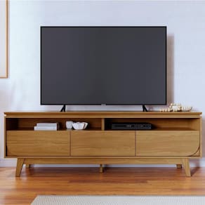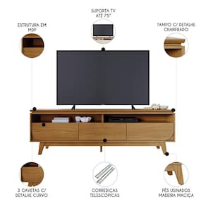 O Rack Bancada de TV 75 Pol 200cm Celina M01 Cumaru, da Mpozenato, combina design moderno e praticidade para transformar sua Sala de Estar.