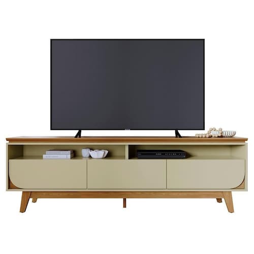 O Rack Bancada de TV 75 Pol 200cm Celina M01 Cumaru/Opala, da Mpozenato, combina design moderno e praticidade para transformar sua Sala de Estar.