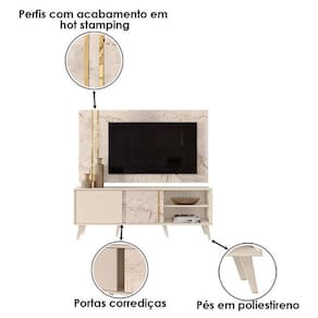 Rack Bancada e Painel para Cronos com Aparador Estoril e Mesa de Centro Indianápolis Calacata Off White Madetec