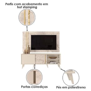 Rack Bancada e Painel para TV Cronos Calacata Off White Madetec