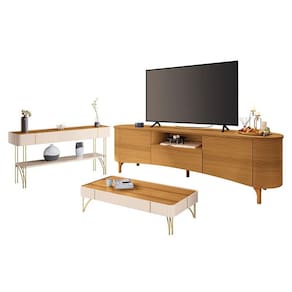 Rack Bancada Elara Cinamomo com Mesa de Centro Cadenza e Aparador Vivant Off White Cinamomo - HB Móveis
