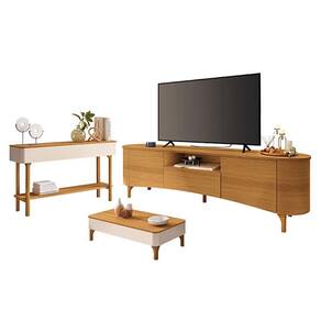 Rack Bancada Elara Cinamomo com Mesa de Centro Liz e Aparador Fiero Off White Cinamomo - HB Móveis