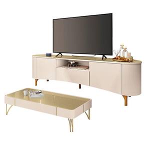 Rack Bancada Elara com Mesa de Centro Cadenza Off White Champanhe - HB Móveis