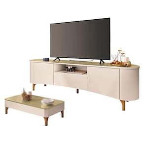 Rack Bancada Elara com Mesa de Centro Liz Off White Champanhe - HB Móveis