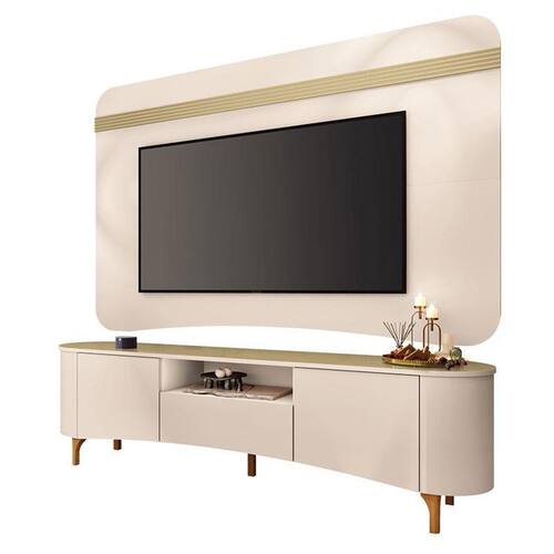 Rack Bancada Elara com Painel Armony Off White Champanhe - HB Móveis