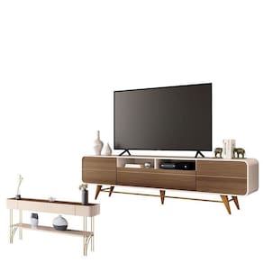 Rack Bancada para Sala Época Off White Castanho HB Móveis