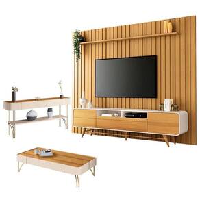 Rack Bancada Época com Painel Ripado You com Mesa de Centro Cadenza e Aparador Vivant Cinamomo Off White - HB Móveis