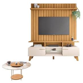 Rack Bancada Essenza e Painel Link 1.6 com Mesa de Centro Sky com Tampo de Vidro Off White Cinamomo HB Móveis