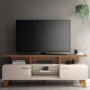 O Rack Bancada Essenza combina sofisticação e funcionalidade para deixar sua sala de estar ainda mais elegante. Com estrutura em MDF e MDP de 25mm e 15mm, possui pintura UV que garante um acabamento refinado e durabilidade. Seu design conta com cantos arredondados e puxadores metálicos em tom dourado, adicionando um toque de requinte ao ambiente. Conta com duas portas basculantes equipadas com pistão a gás e dobradiças metálicas, proporcionando praticidade no dia a dia. A prateleira de vidro de 6mm permite organizar seus aparelhos com moda. O tampo em MDP de 25mm suporta até 50kg distribuídos, garantindo para sua e demais itens decorativos. Os pés de madeira maciça com acabamento envernizado completam o visual sofisticado e é ideal para até 60.