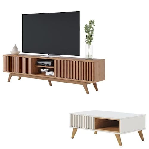 Apresentamos este conjunto de Rack Bancada Fortaleza e Mesa de Centro Jeri, fabricados pela Colibri. O rack possui quatro portas de giro inspirado nas maiores tendências com o detalhe ripado nas portas trazendo delicadeza e sofisticação, dois nichos para melhor acomodar seus aparelhos eletrônicos, e duas prateleiras para organizar seus objetos. A mesa possui dois nichos internos, pés em madeira maciça dando estalibilidade e um toque sofisticado. Seja para sua sala de estar, sala de tv ou até mesmo em salas de espera de ambientes de escritório, servindo como apoio para revistas, vasos e demais objetos decorativos. Fabricados com materiais de alta qualidade que garante resistência e durabilidade aos produtos. Confira mais detalhes e aproveite!